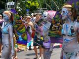 The Rainbow Parade 2009 in Vienna - for the 14th time, about 100.000 spectators. Gays, lesbians and transsexuals in colorful dresses, or just simply bodypainted, fulfilled almost every wish for a photo. Mehr Fotos folgen - more photos to be posted...